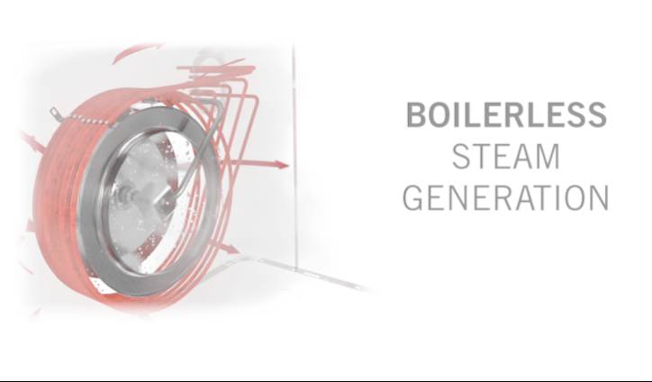- A boilerless system combi oven injects small amount of water directly onto the heating element in the chamber, creating steam which is circulated by fan.